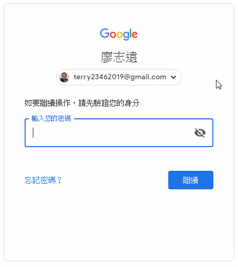 這個時候,我們需要再登入一次帳號,以確認這個帳號的所有人的確是我們自己。