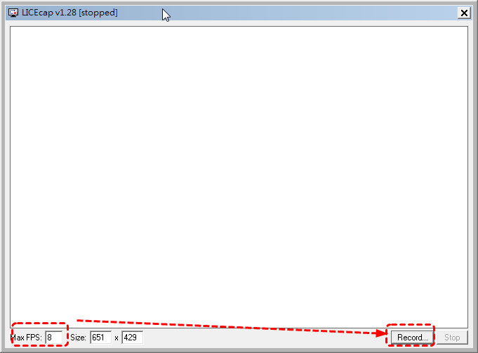 首先呢,我們打開 LICEcap這個程式之後,先設定一下FPS。FPS指的是每秒抓幾個圖片的意思,數字越大,GIF自然就越流暢,檔案自然就越大。這裡保持預設值 8就很夠用了。